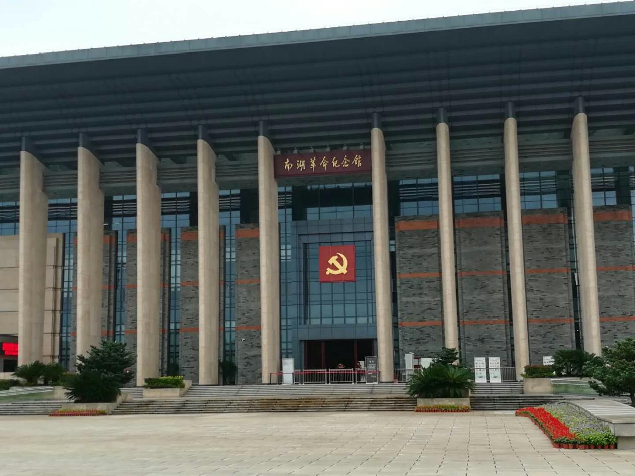 南湖革命纪念馆馆名由改革开放的总设计邓小平亲笔题写,纪念馆从空中俯瞰为一个硕大的党徽图案,是中宣部命名为全国百个爱国主义教育示范基地之一。主楼顶部矗立着天圆地方的建筑标志,隐喻着中国共产党的丰功伟绩如天地日月永垂于世。一楼、二楼的“开天辟地”单元,包括“探索救亡图存的道路”“中国共产党成立”和“十三位代表生平事迹介绍”三个部分;三楼则为“光辉历程”单元,包括了“进行新民主主义革命”“建设社会主义新中国”“走中国特色社会主义道路”三个部分。一册册书籍、一张张照片、一件件遗物无声地诉说着那段战火纷飞的峥嵘岁月,体验着那段烽火硝烟,激情澎湃的峥嵘岁月,心灵深处得到了洗礼和升华。新中国日新月异的图片展示,有力地见证着中国的翻天覆地的变化,使大家更加坚定了理想信念,坚定了继承光荣革命传统的信心。