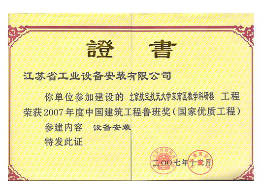 北京航空航天大学东南区教学科研楼工程建筑面积广,构造复杂,是江苏省安在北京地区的又一标志性工程,获得2007年度“鲁班奖”。