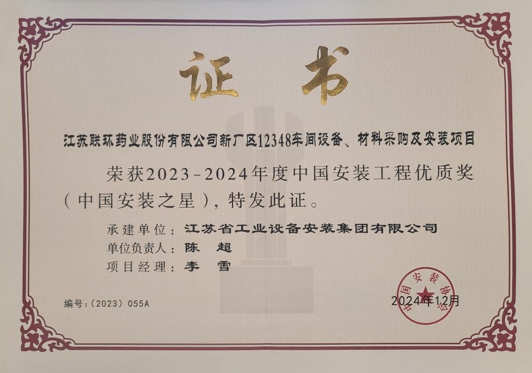 我司承建的江苏联环药业股份有限公司新厂区12348车间设备、材料采购及安装项目位列其中,江苏省安再添1座金杯! 截止目前,省安共计摘获16个安装之星,在行业中也是首屈一指!